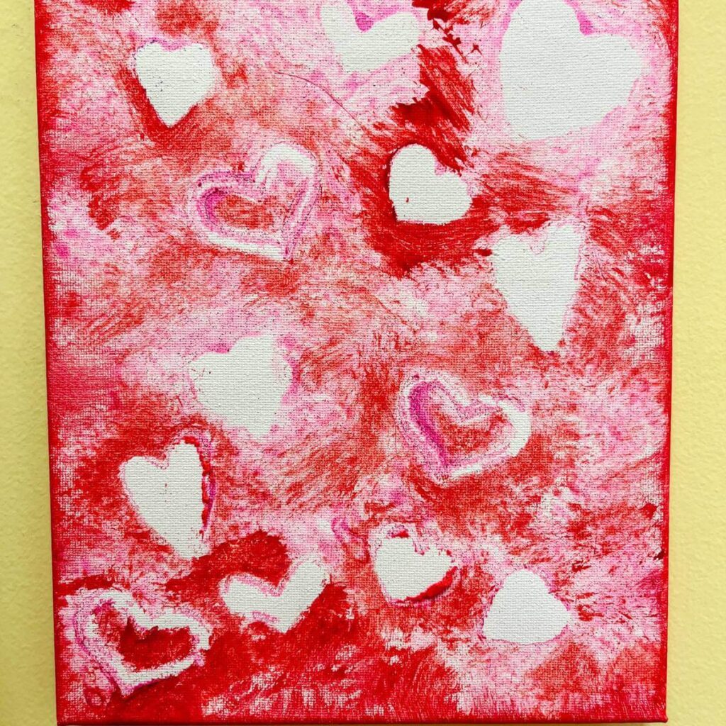 This craft is a fun way to let your child paint however they want, and they literally cannot mess this up. You can try it on a blank canvas or on construction paper to make your own Valentine cards. This works for older children, too, but young children love the freedom this craft offers.