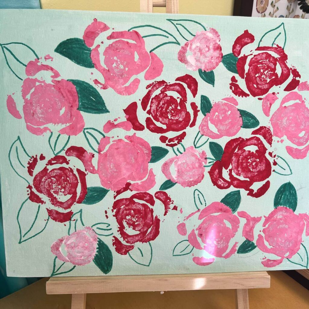Another cute craft that we like to do around Valentine’s Day is this flower painting with celery. Kids love painting with things that are not paintbrushes, and the celery really comes out looking like flowers. This is the perfect opportunity to build fine motor skills, too!